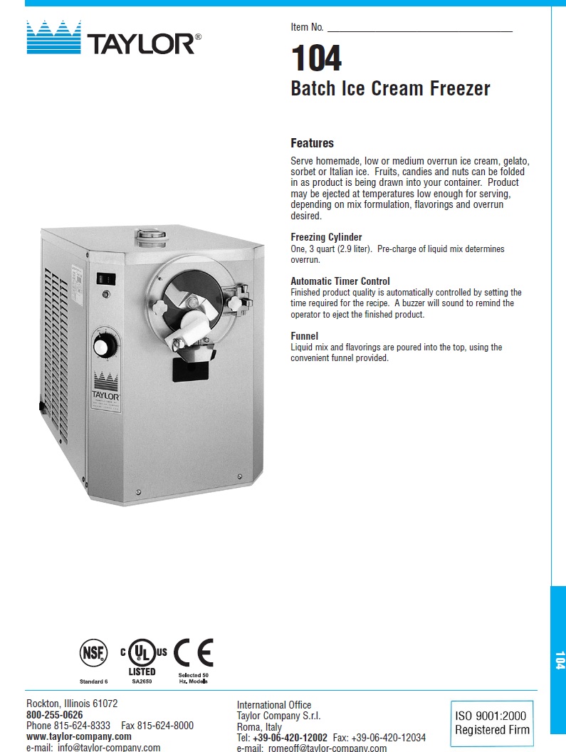 1. เป็นเครื่องผลิตไอศครีมชนิดแข็ง (Hard ICE CREAM) ทำด้วยเหล็ก ไร้